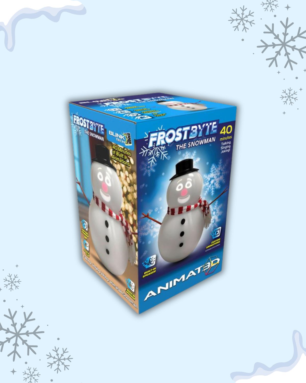 Bring the magic of Christmas to life! FrostyFlake™ features multiple animated faces that sing, talk, and even yodel with over 40 minutes of built-in songs, jokes, and expressions.